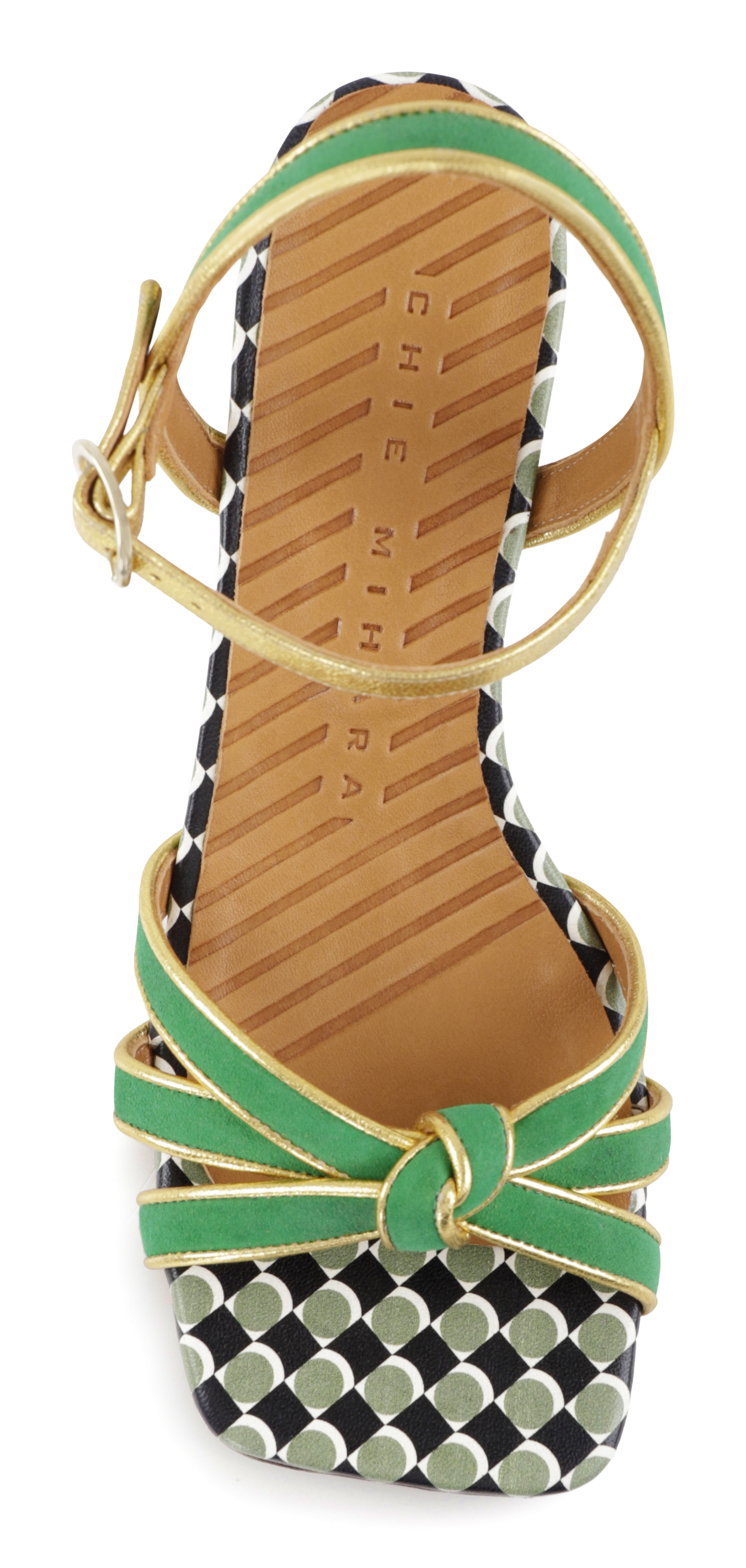 Sofisticada sandalia que combina 100% piel estampada, de ante y metalizada. Cierre en tobillo mediante hebilla. Forro y plantilla de piel. Suela de cuero. Hecha a mano. Tacón kitten de 4.5 cm
