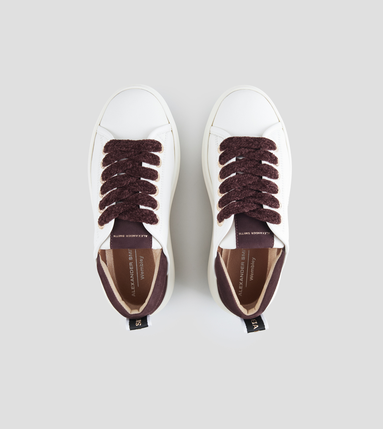 Precioso sneaker de piel y ante con detalles color burdeos. Interior de piel y suela de goma. Altura de 5cm